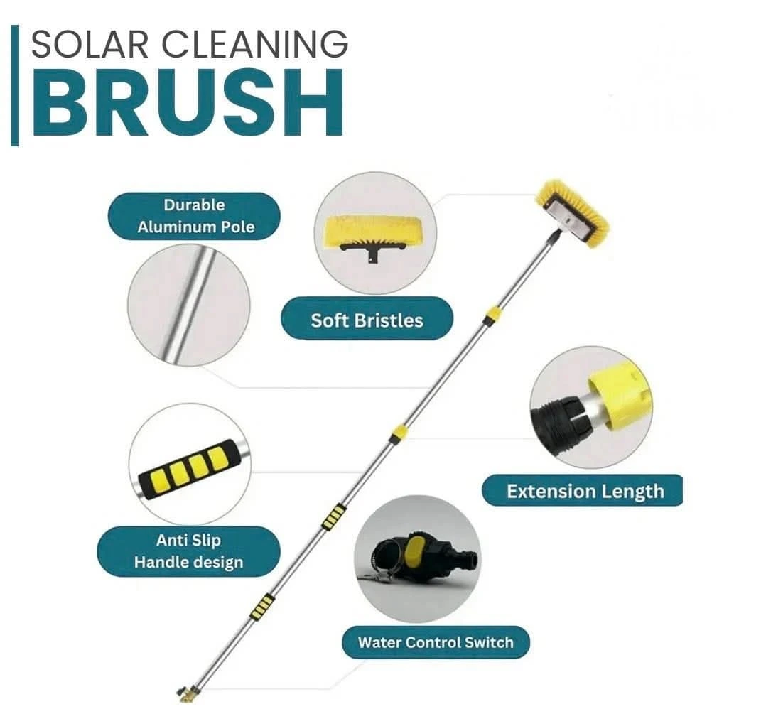 The Solar Panel Cleaning Brush helps keep solar panels clean and efficient by removing dust, dirt, bird droppings, and pollution residue. Because dirty panels produce less power, regular cleaning plays an important role in maintaining system performance.